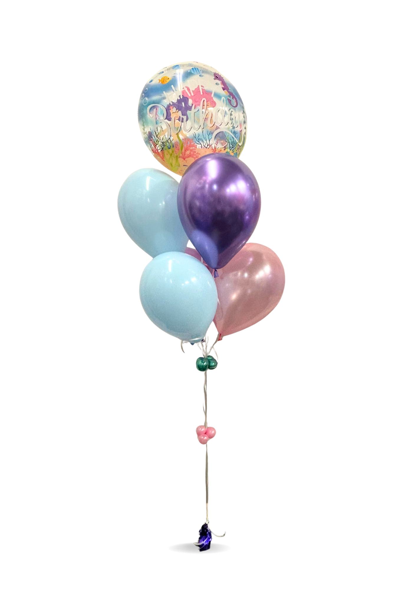 Celebrate in style with this Mermaid number balloon cluster stand, beautifully paired with enchanting mermaid bouquets. Perfect for birthdays or special occasions, it adds a whimsical underwater touch to your decor. Easy to set up and sure to delight guests of all ages, this stand creates a magical atmosphere that makes your event unforgettable.