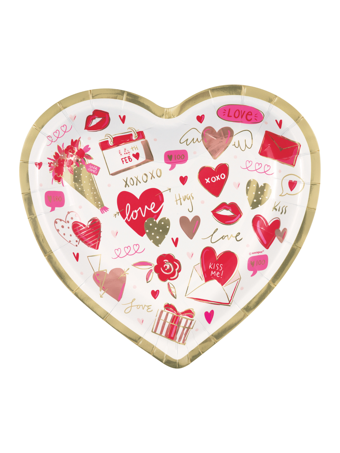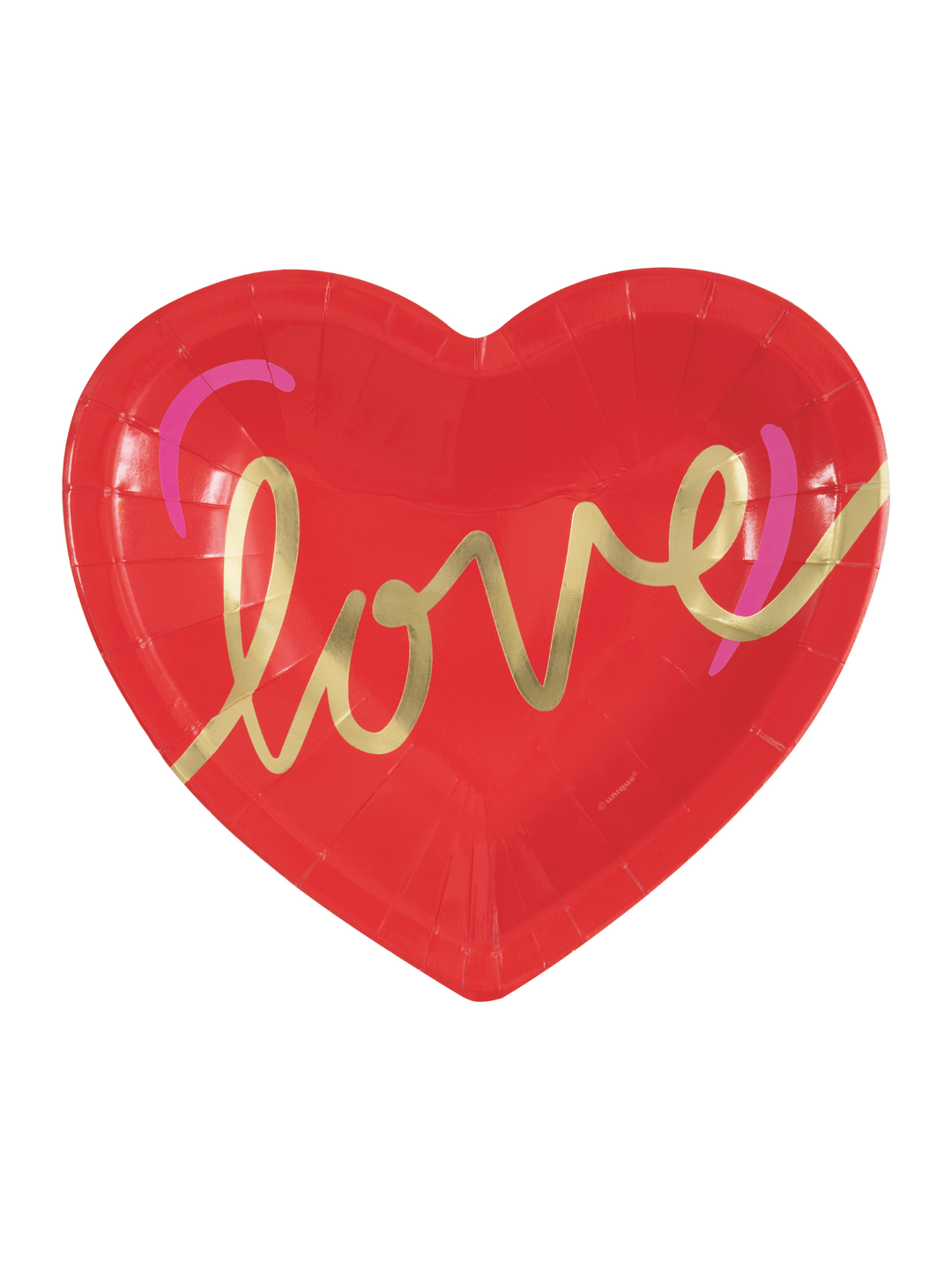 Red & Pink Valentines "Love" Heart Shaped 7.25" Dessert Plate 8ct - Foil Stamping